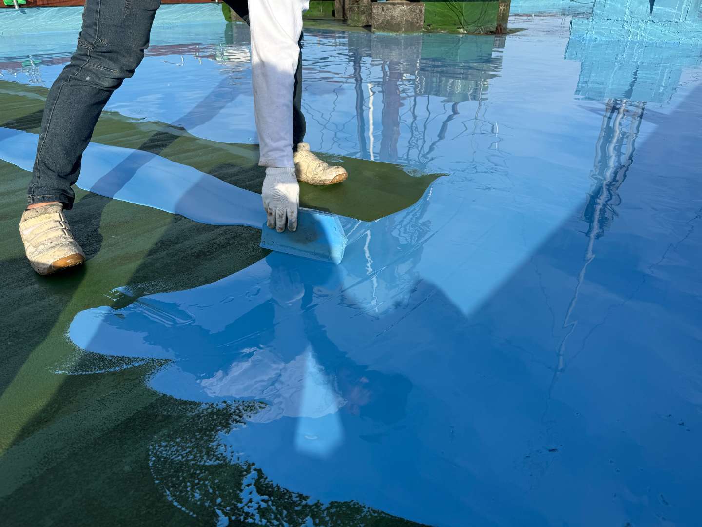 最後にウレタン防水層を保護するためトップコートを塗布。