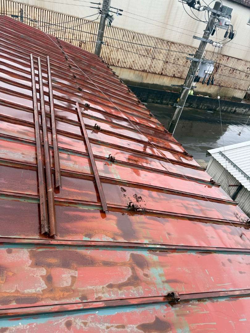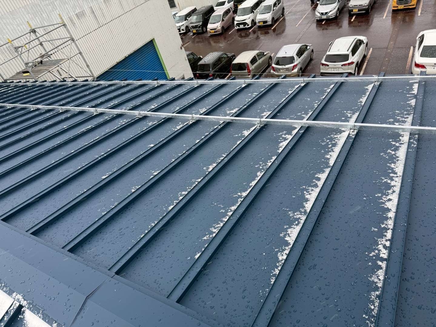既存の金属屋根の状態を確認したうえで、下地調整を行い、新たに金属サイディング屋根材を重ねるカバーリング工事を実施。